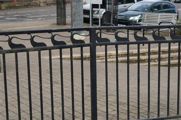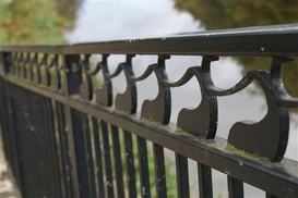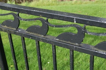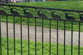 I designed this ornamentation for a standard pedestrian barrier railing, along the canal towpath at Townhead in Kirkintilloch. The design is an abstraction of the shape of a boat hook used for the barges when the canal was first opened.