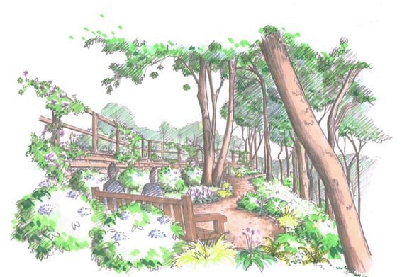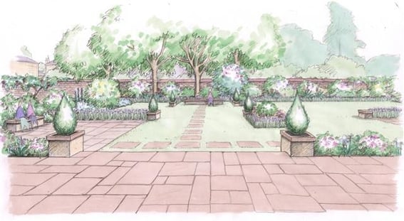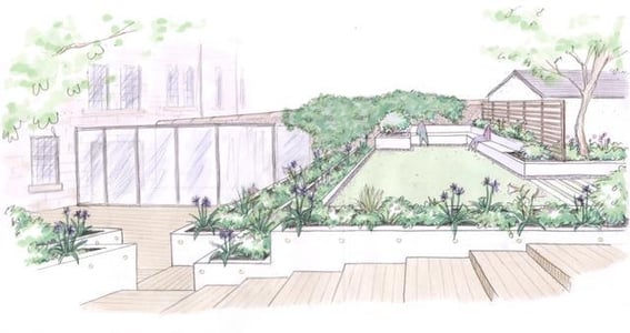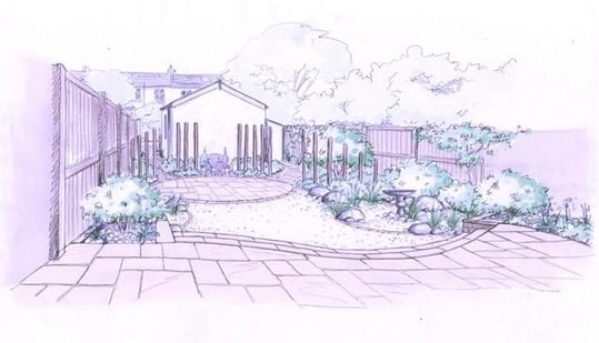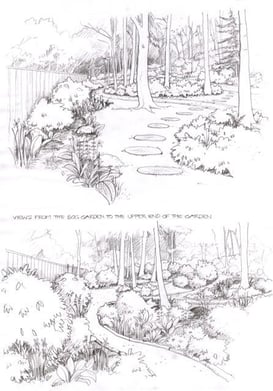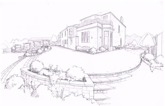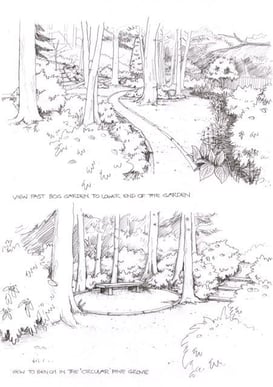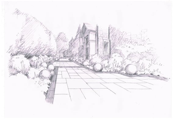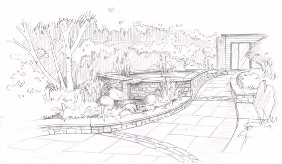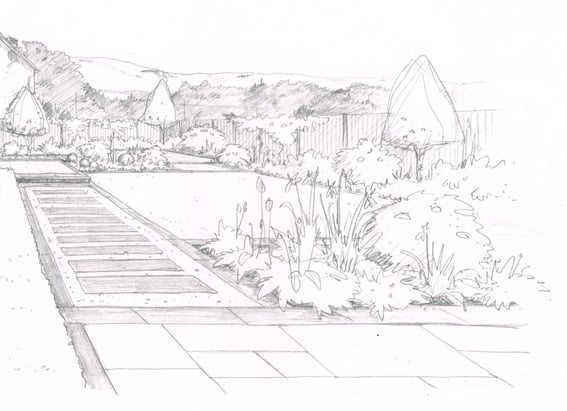 I usually do rough sketches during the design process to help me to visualise certain aspects of the garden, and I will often work these up a bit to help me to explain how the garden will ultimately look to my clients. Many people find plans hard to interpret, but connect instantly with a 3D image of their garden. These are a few examples of some of the sketches I have produced either as 'working drawings' or for presentation to clients.